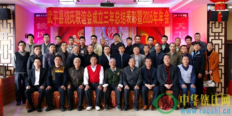 为增强我县饶氏对县联谊会的凝聚力,拓展社会影响力,特召开本次总结表彰大会及2016年年会。今天,各位宗亲欢聚一堂,会议内容主要有三项:一是三年来全县饶氏工作总结;二是表彰三年来涌现的先进宗亲;三是提出2017年度工作打算。希望大家认真讨论,集思广益,多多提出宝贵意见,不断推动我县饶氏工作全面开展。