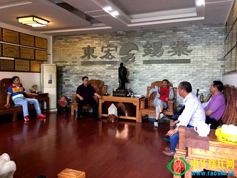 2017年5月7日,广东南雄饶氏联谊会理事会饶纲奎、饶伟、饶振雄等正副会长一行,走访江西大余县东宏锡业公司董事长饶日荣宗亲、韶关饶氏联谊会饶坤会长以及饶金玉、饶辉文名誉会长,大家共聚一堂,商讨相关工作事宜。