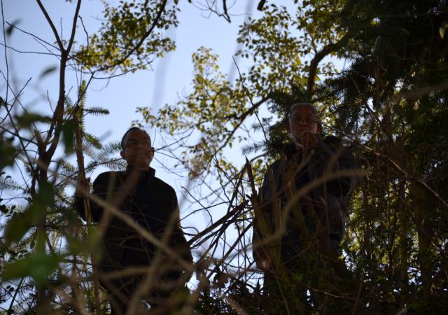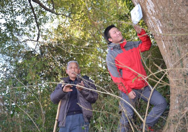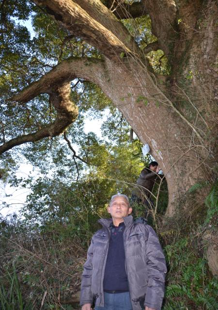 走近此樟,要想靠近此樟时,却是“山穷水尽疑无路”,幸遇一当地田间劳作的村民,于是“柳暗花明又一村”了。我们问及此樟的来历,他说此樟与饶氏有些关系,当地传说是饶氏先人所植,由此可见,此樟与饶氏先人的联系,并非杜撰,得到这个信息,增强了我们对此樟树的敬仰,它成为了我们心中祖先的化身。