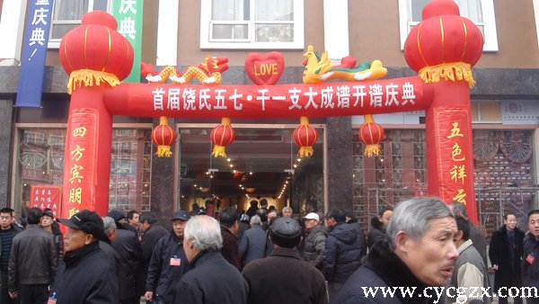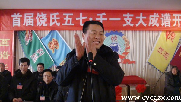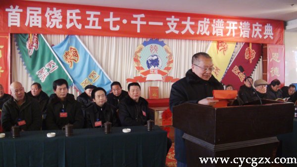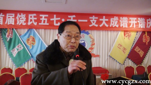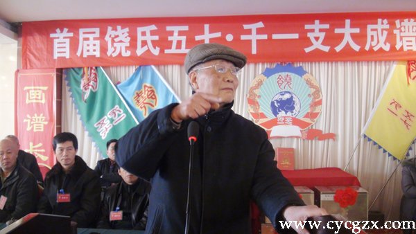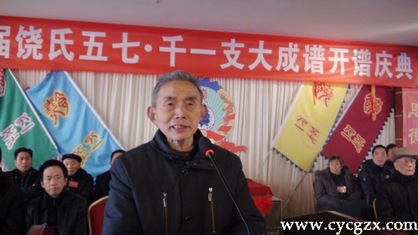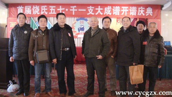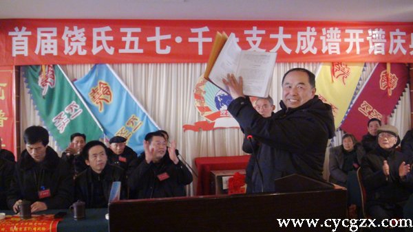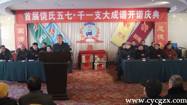 是日一大早,礼仪鼓号喧天,迎接各祠的接谱专车,车上族旗飘扬,宗亲们敲锣打鼓,从干休所领取族徽和祠谱后排起长龙经新建路来到银海大酒店参加开谱盛典。 五色祥云临紫阁 四方宾朋聚银海。各支派的宗亲早已欢聚在银海彩门前,喜庆开谱盛典的到来。三个一伙,四个一起,一声声的问候,一句句的祝福,是那么的温馨,是那么的热诚。 挥长卷开画本,一揽陕赣渝鄂,字谱大成传捷报;歌盛世联珠璧,几度春夏秋冬,族民满怀舞彩风。上午10时,首届饶氏五七·千一支大成谱开谱庆典仪式开始,贺词贺联高高挂起,鼓乐欢快的响起,喜炮兴奋的绽开。欢笑声中谱车将宗谱载到彩门前,主席台前理事会成员恭敬的将族徽、族谱卷首和祠谱摆放在谱桌上。 主修饶金龙说“二年多的期盼,越数千里的奔波,九百个日夜的奋斗,今天终于结出了累累硕果……接着,总顾问饶一鸣发表了热情洋溢的讲话;饶国柱老先生介绍族徽族旗的寓意;来自江西、陕西等地的饶氏家族代表发言;有的即兴赋吟诗,有的送来了《贺信》,有的发来了短信,…… 中华饶氏研究会湖北分会饶秘书长亲临庆典现场并致祝贺,主编饶浩良先生宣布开谱,并向饶秘书长赠送了饶氏大成谱。 庆典结束后,与会饶氏家族代表共进午宴,大家把无尽的亲情融进那绵绵纯厚的玉液之中。难怪世人说“只有千年的家族,没有百年的亲戚”。一声声的问候,让我们陶醉在饶氏家族欢乐的海洋之中。 下午,来自远方的饶氏家族陆续启程。挥手自兹去,依依惜别情;此地一为别,联宗又启征。 据了解,本次饶氏大成谱修谱历时2年半,共筹集资金50余万元。全套共有11卷,收集了15000多位饶氏家族成员。本谱和本次活动有“五大特色”,一是设计了族徽族旗;二是封面采用窝形烫金字体;三是谱内有庄门相、庄门简介;四是谱内收集了被北大、清华争抢的13岁神童饶家鼎;五是有92岁高龄的老人参加庆典大会。