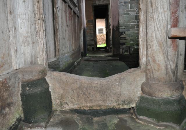 岁月流逝,木制的门槛成为了月牙型