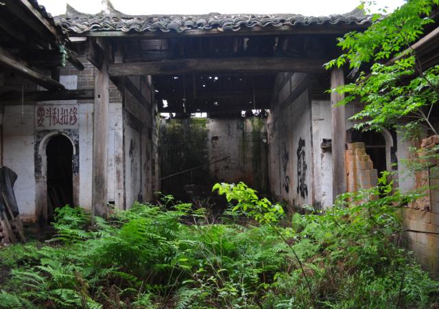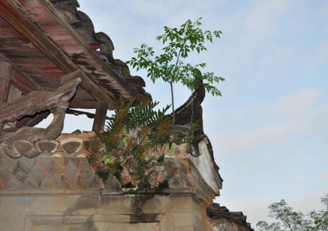 艰难生长的草木与岁月沧桑的古宅形成了对比,是不是预示着它们的生命轮回和重生?
