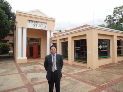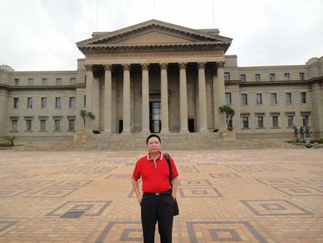 饶叶俊宗亲(左)与同行者在南非总统府合影