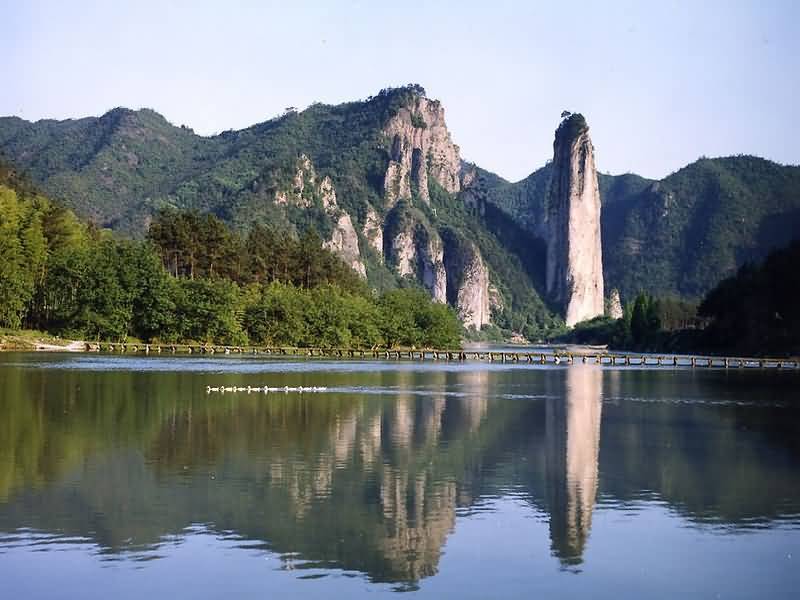 第二天一早,秀亮祖先带我去小赤壁景区。车行至下洋石桥,首先映入眼帘的便是婆媳岩和舅轿岩;神态生动,故事传神。当我们从龙耕路下至小赤壁之底,到处是摩崖石刻;许多怪石散落练溪水中,形成溪中有岛,岛中有水,似岛非岛,似湖非湖的小蓬莱。我问秀亮祖何处景点与其先祖有关,他便带我来到倪翁洞景区。车刚停稳我在路边发现有一八角亭,古色古香;建于一离岸巨石之上,见一匾额上写着“问渔亭”。秀亮祖见我好奇便和我一起跨上巨石,座在亭中看着练溪的波光,远眺对岸壁立的山崖。我向来对古建有些兴趣,里里外外打量一番,见四周有八九个石洞里面还蓄有水;秀亮祖告诉我那是柱洞,原来的问渔亭就是他的祖父辈建的;现在的这个亭子是后来复建的,这使我不由得肃然起敬。边说着便带我向岸上走去,来到一座庭院面前;其门额上写着——独峰书院。观石碑看介绍多了几分崇敬之情。秀亮祖说:“这间书院原本所用的桌椅是其始迁祖所赠,他姐姐在此间读书时还曾见过桌椅上的铭记—富铭公赠”。翻查资料独峰书院在清同治年间重修,民国以来长期作为小学。这说明先辈对文化教育的重视和经济条件的改善。出了书院便向神奇的回音壁和充满神奇的老鼠偷油景点进发了。不知是自然的神奇,还是后人的附会和演义;我反正是充满了好奇。在倪翁洞中最使我感兴趣的到是摩崖石刻,高低错落到处都是。刚出洞口热浪袭来,真是洞中方一刻,洞外晨光进午间哪!原本我们还想去踏看一下下洋江西寮旧址,但荆棘纵横杂草丛生加之骄阳似火;我们便往回赶了。