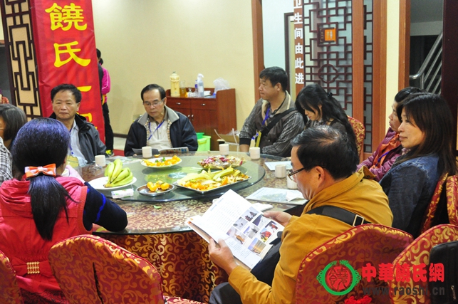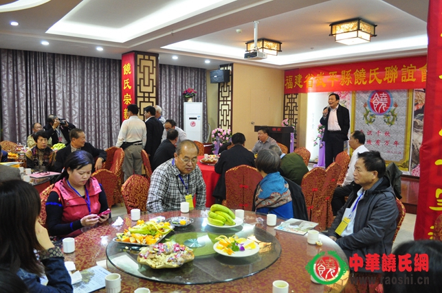 2013年11月20日20时20分,来武平参加第三届海峡两岸定光文化旅游节的台湾饶氏宗亲代表团一行二十余人,在中华海峡两岸客家文经交流协会理事长饶颖奇宗亲以及饶鸿奇宗亲的带领下,来到酒店餐厅看望与会宗亲,两岸宗亲欢聚一堂,其乐融融。