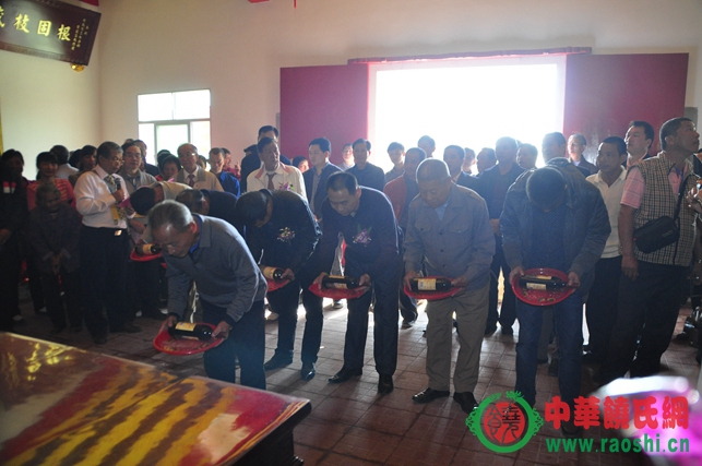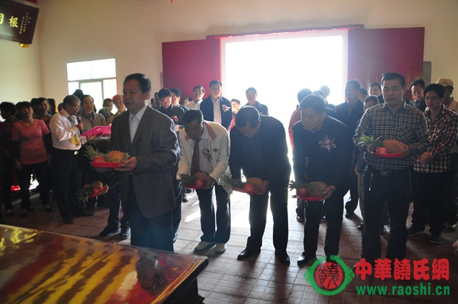 落成揭牌及登龛大典由台湾宗亲按照台湾传统习俗进行。庆典仪式由台湾饶欣奇宗亲主持,祭祀法事由郑集田玄御法师主持。通过祠堂揭牌、登龛、诵经、开炉、上香等各种仪式,各地后裔向饶氏先祖敬献祭品,感念先祖艰辛创业之功。通过庆典,大家领略了台湾的中华传统文化,增强了全体饶氏族人敦亲睦族之心,同宗同脉之情。