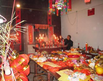 如果当年本宗族添有新男丁,那么主家的酒桌应该是摆放到上厅最前面的,一般来讲,当次上灯祭祖活动的费用大多数由主家出,也就是新男丁家请族人饮酒,以作庆贺。来喝酒的人越多,主人家越是光彩。新男丁主人家还要写一张有祖父母命名的红纸,贴在上厅高墙上,叫“贴名单”。
