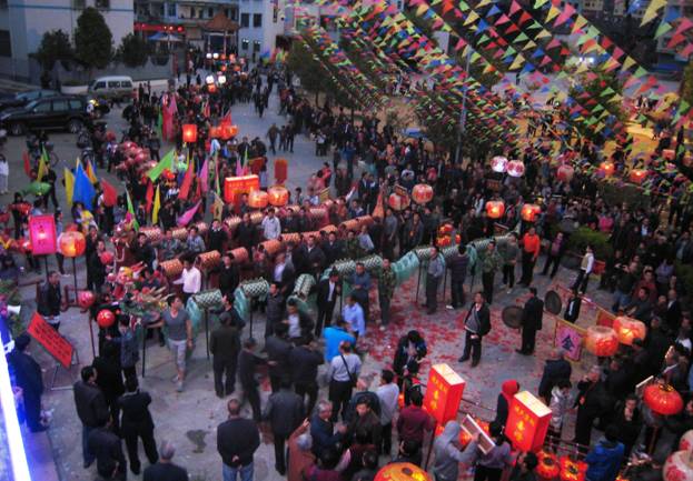 茶阳作为大埔的老县城,己有400多年的历史。饶半城的饶姓不但人口数量众多,而且人文蔚起科甲辉煌,座于县城之地利,在当时的影响力也是位列前茅。每年春节的各姓正月迎灯上灯拜祖活动,饶姓也是规模盛大,气势非凡屈首-指。曾何几时,十三条饶家龙闹正月十三的盛况,轰幼城乡传为佳话,使人津津乐道。如今时过境迁,饶姓虽无当年的辉煌风光,但毕竟还人多势众,祖宗留传下来传统习俗无改,各个分祠堂的上灯拜祖活动,仍然如火如荼进行,从年初五到十三未曾间断,锣鼓喧天鞭炮齐鸣,烟花腾空怒放五光十色巍然壮观,加上其它各姓的上灯拜祖活动,成为古镇茶阳一道传统的民俗亮丽风景。