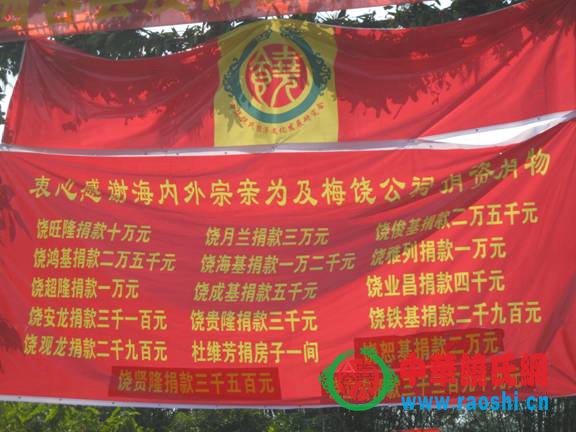 祠堂吉日来庆典,宗亲相聚乐融融。及梅公祠的重修典礼,是我们饶氏宗族生活中的一件大事、喜事、好事。及梅公祠重修,象征着我全体族亲精诚团结、奋发进取、尊宗敬祖的优良美德的新的起程。