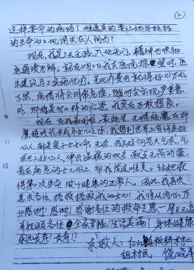 求助未果,饶小平只好四处借钱,将饶云送入黄冈中心医院,靠化疗续命。