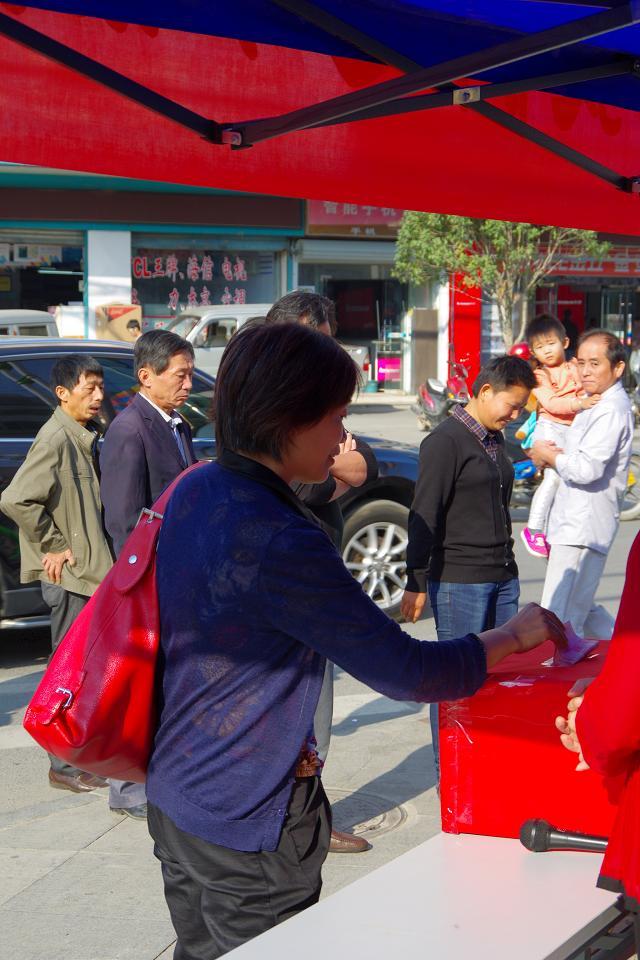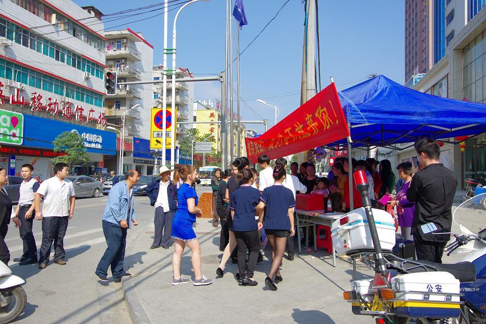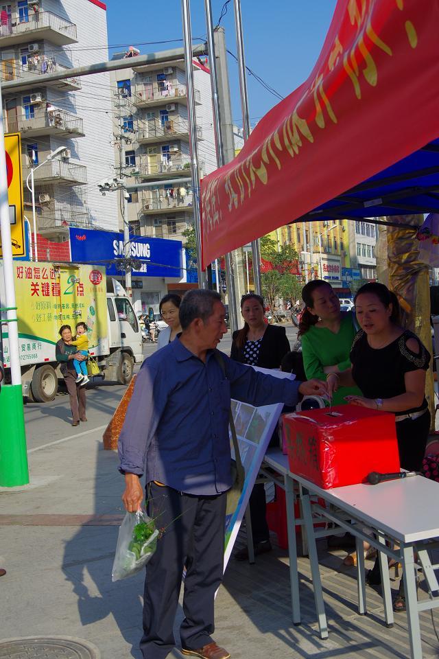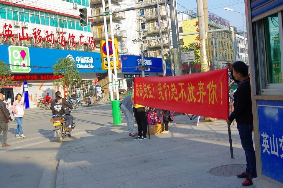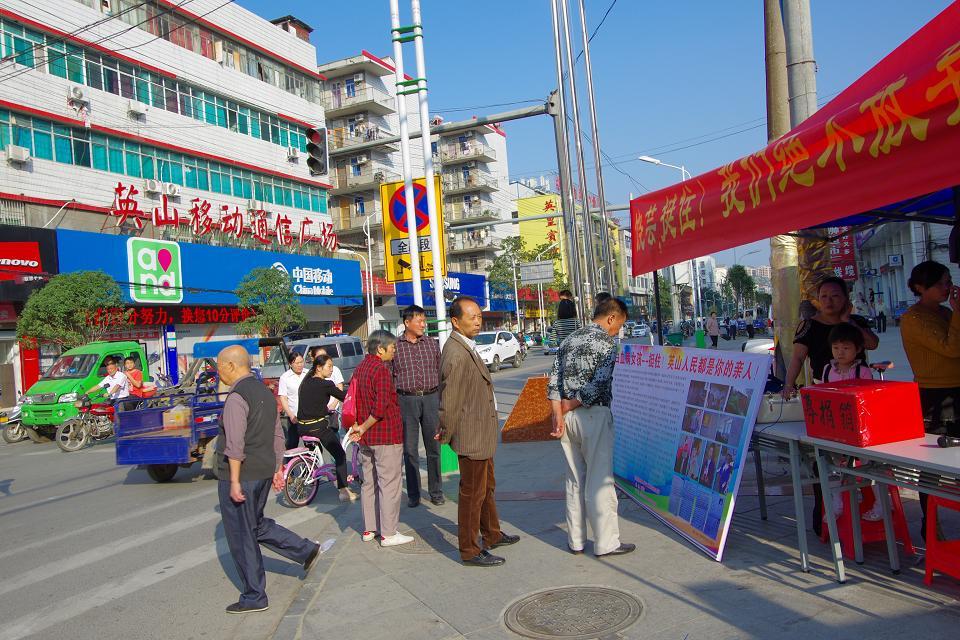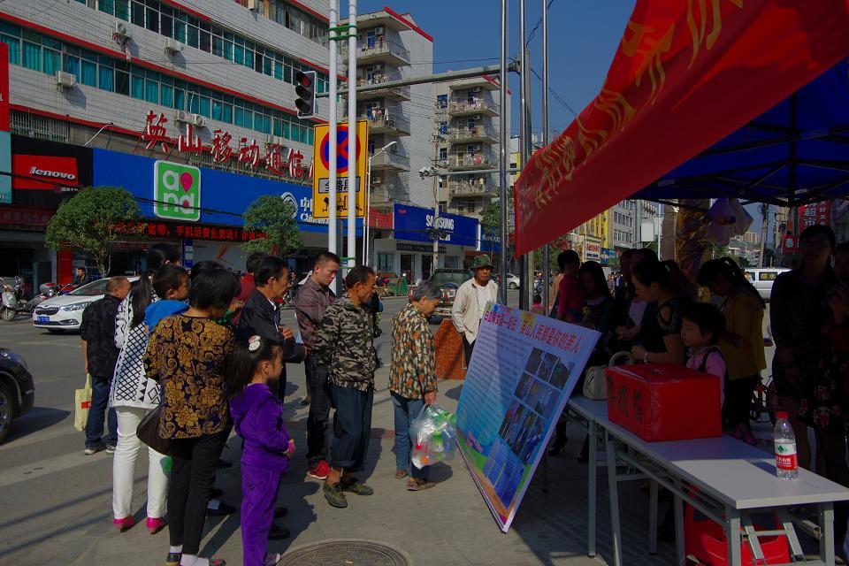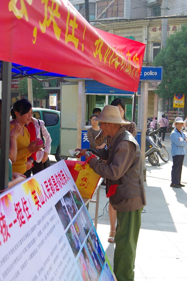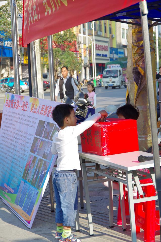 12日,在英山城关街头,三三两两的行人都加入到捐款的队伍中,一位老者从贴身的衣裳里摸出食盐袋包着零散钞票,全部捐了出来。一位先生抱着一个还在吃奶的孩子,通过孩子的手,把百元钞票塞进了捐款箱……