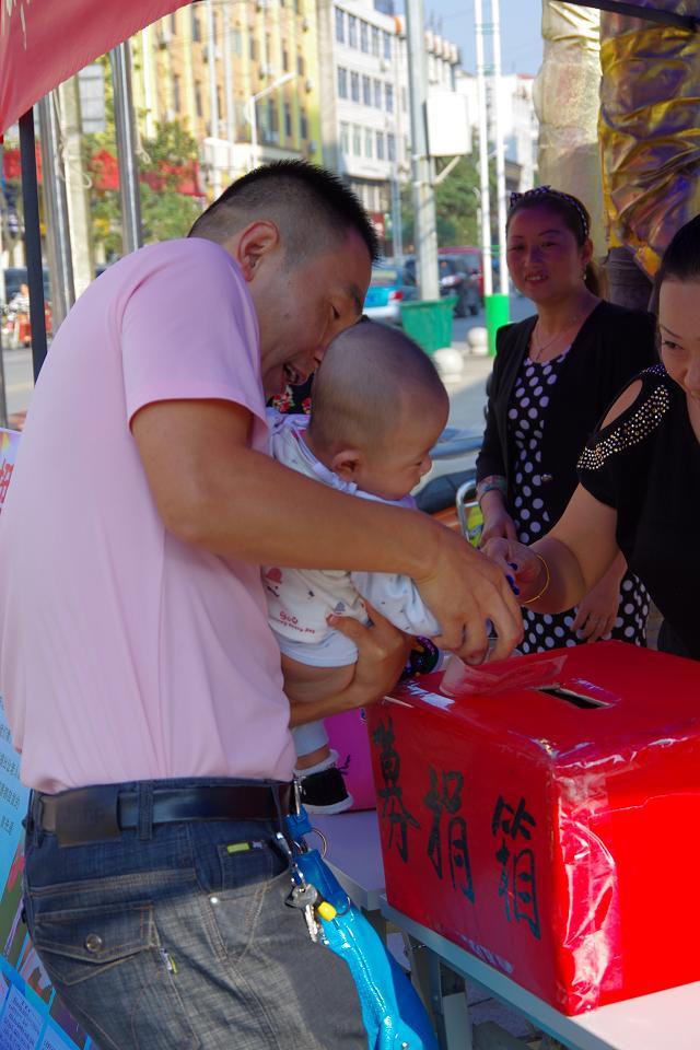 又有一位帅气的爸爸带着可爱的孩子来献爱心
