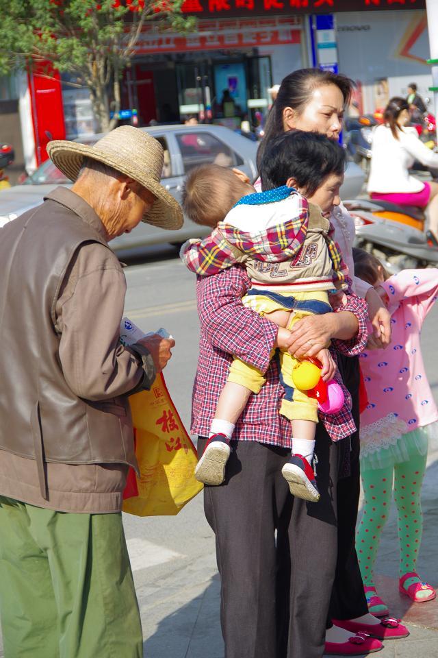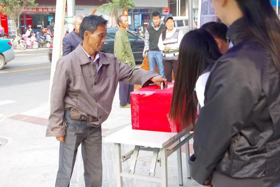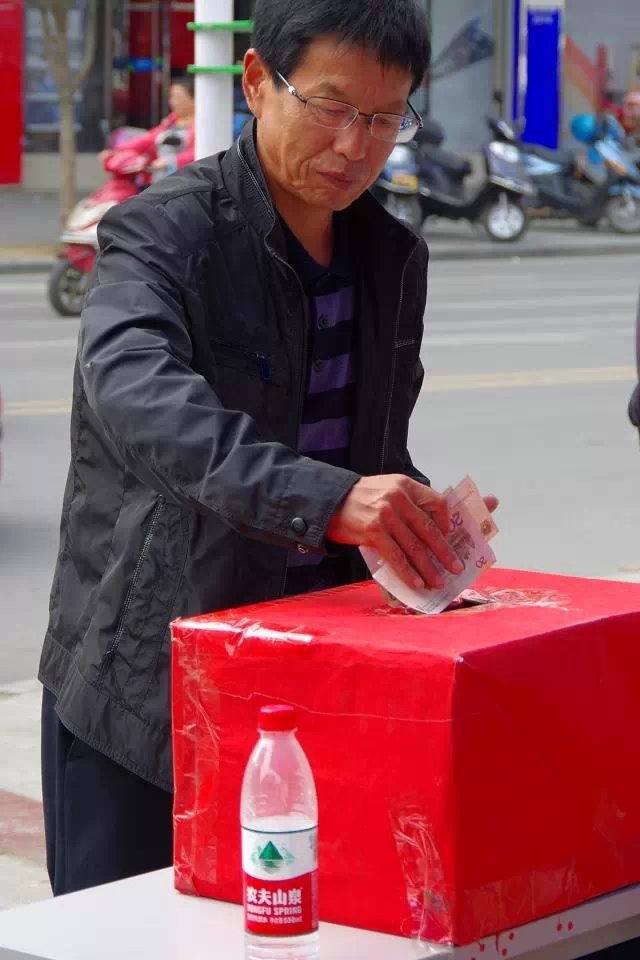 路过的阿姨也停下了脚步,毫不犹豫的献爱心