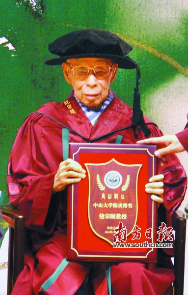 11月3日,97岁高龄的饶宗颐在香港亲手接过中山大学颁赠的“陈寅恪奖”。这位银发白眉的国学大师反复端详着这个份量极重的奖项,脸上露出了孩童般的笑容。