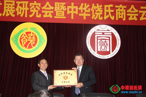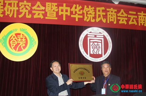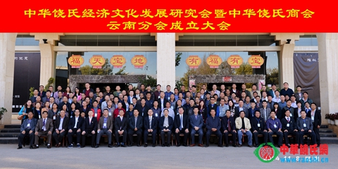 2014年11月7日,来自广东、贵州、四川、浙江、湖北、湖南、安徽、广西、云南、重庆10个省(市)的特邀代表、各省(市)分会代表、嘉宾和宗亲共150余人欢聚滇池湖畔昆明福保文化城,共商盛举,共同参与族盟股份饶氏文化研究中心云南分会暨中华饶氏商会云南分会成立大会。大会于2014年11月8日胜利召开。