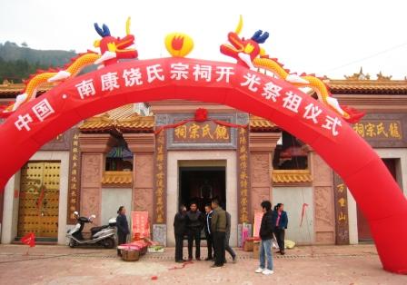19日早5时许,天还没亮,我们冒着冷凜寒风来到“南康百家姓和谐城”饶氏新宗祠前,参加饶氏新宗祠转火仪式:开门、进香、献礼、、、、、、鸣炮,一切依古制顺序庄重肃穆进行。仪式结束后回到宝辉酒店早餐。上午,全体人员乘车依次返回“南康和谐城”宽大的广场,但见会场布置得庄严富丽而富有客家人的特色。会前,寒冷的天空中还落下毛毛雨和绿豆大小的冰雹,落在会议桌上的红布上,增添一番即时景色,过了一会才融化,到了会议开始时,天气突放晴,温暖的阳光普照赣南大地,仿佛祖宗英灵庇佑我辈,令人大叹神奇。