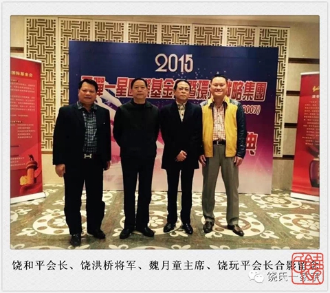 2015年元月16日,饶家洪桥将军一行来深参加“两弹一星国际基金会暨环球战略集团2015年迎新庆典”,中华饶氏商会作为该基金会的嘉宾应邀出席。受广东颂华会长的委托,我和中华饶氏商会常务副会长玩平宗亲陪同洪桥将军出席该活动。