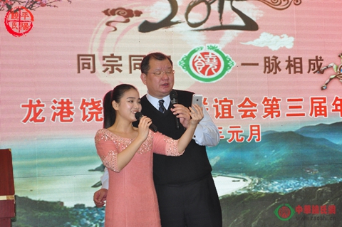 在诸位宗亲的发言期间,穿插娱乐节目。2012年新晋复旦研究生的饶锦倩主持了第三届饶氏文化研讨会,给人留下深刻印象,本次她学成归来,会前临时受命,担当主持本次年会,妙语连珠,应变自如。饶家儿女们的即兴演唱,堪称专业水准,宗亲参与的游戏节目,让人捧腹。宗亲们出色的表演,让人感觉饶氏家族人才济济,毫不逊色于其他家族。在不知不觉的欢乐气氛中,龙港联谊会2014年年会圆满落幕。