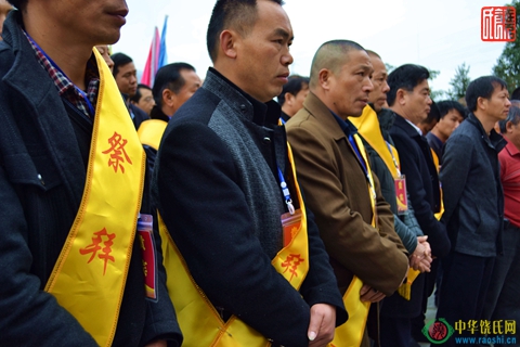 “……仁风远播,大化周行。回顾族史,后代永铭。洪武立户,九世开明。……”在宗亲饶庆光慷慨激昂地诵读祭文后,饶荣坤宗亲受中华饶氏总会秘书处委托,向大家带来了饶氏总会的祝福:“……龙岩饶氏是福建省内一支重要的饶氏力量,也是族盟股份饶氏文化研究中心的重要支撑者之一,全国饶氏事业的发展壮大与你们的贡献密不可分,祝大家身体健康、幸福吉祥;愿饶氏家族繁荣兴旺、万世荣昌!”远在山东烟台的中华饶氏商会会长、新海集团董事长饶道新宗亲,因公事繁忙,不能来庆典现场与大家团聚,为此,他深表遗憾,特意发来贺词:“有史以来首次在曰隆公墓前,饶氏宗亲欢聚一堂,共同祭拜先祖。借此,我仅代表全家向众宗亲致以亲切的问候,向曰隆公深深鞠躬以表深情”。接着,是来自曰隆公同胞兄弟的子嗣代表们,分别上台向祖先表示心意,向龙岩饶氏宗亲带来问候!借此机会,龙岩船巷饶氏向所有宗亲宣读了《关于筹备成立龙岩船巷三郎曰隆公饶氏教育基金会草案》,以此鼓励饶氏子孙发愤图强,流芳扬名。