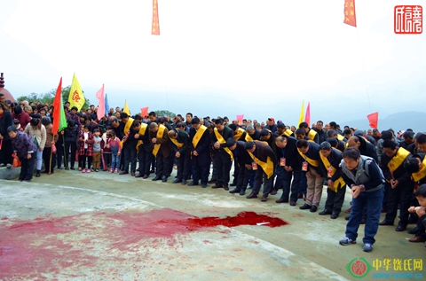 随着阵阵锣鼓声的敲响,本次竣工庆典在欢腾的舞龙表演和采茶灯表演中拉开了序幕。表演队是来自永定文溪的饶氏宗亲组建的,姑娘们浓妆淡抹,舞姿婀娜,小伙子们身着红色锦衣,手舞金色祥龙,他们以其独有的风采向祖先展示了后辈的力量。庆典主持饶贤斌宗亲,组织祭祖仪式正式开始。一拜,念吾始祖,开基拓土,备尽艰辛;二拜,敬备茶酒,五果三牲,望祖受领;三拜,恪守祖训,勤俭忠诚,祈祖庇护。