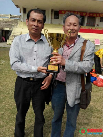 本网讯 骏马辞岁雄风在,吉羊迎春捷报传。广东省梅县素有“文化之乡”“华侨之乡”“足球之乡”之称,该县第30届“强民杯”足球赛于2015年春节期间在梅县人民体育场举行。由族盟股份饶氏文化研究中心广东分会副会长饶占锋、饶坚昌领队,饶占扬任教练,饶伟辉任队长,饶伟全任副队长,冠名“饶家军”的足球队,经过多场次激烈角逐,最后荣膺冠军。“饶家军”赛出了风格、赛出了水平,为饶氏家族赢得了荣誉。