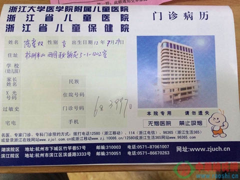 住院地址:浙江大学附属儿童医院,杭州市下城区竹竿巷57号。