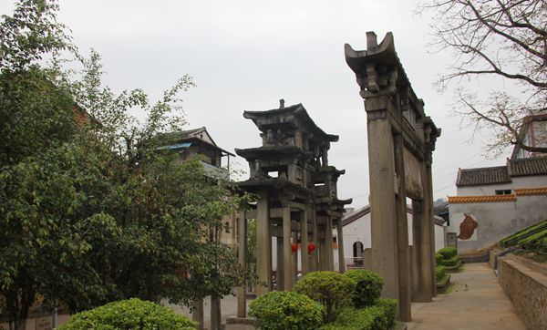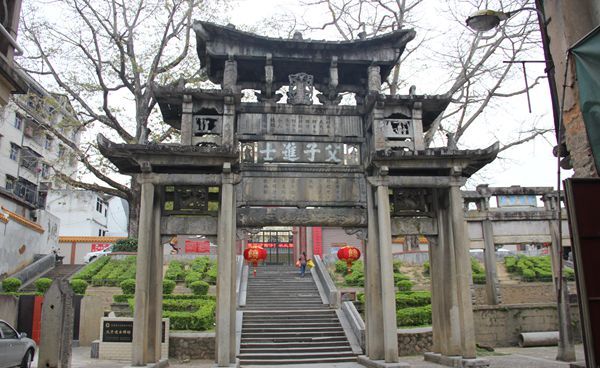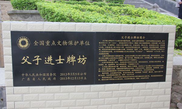 茶阳 “父子进士”牌坊,又称“丝纶世美”牌坊,是明朝万历三十八年(公元1610年)为纪念饶相、饶与龄父子同中进士而建的,历经400多年现仍完好无损,由花岗岩石构筑,横匾、石梁、亭盖分别由“双龙戏珠”、“双龙腾云”等图案雕刻装饰,造型优美,工艺精湛,结构独特,雄浑古朴,为石雕建筑珍品。2013年列为国家重点文物保护单位。无论是经历五次大大小小的地震,还是饱受文革期间破四旧的血雨腥风,它均坚不可摧地屹立于此,无论那个角度,均是那么美伦美焕,成为当地一座不可摧毁的地标,是饶家精神气节凝聚的风物,成为茶阳饶氏心中的一座丰碑,更是我们饶氏不可多得的无价之宝!