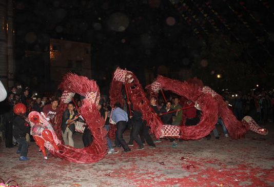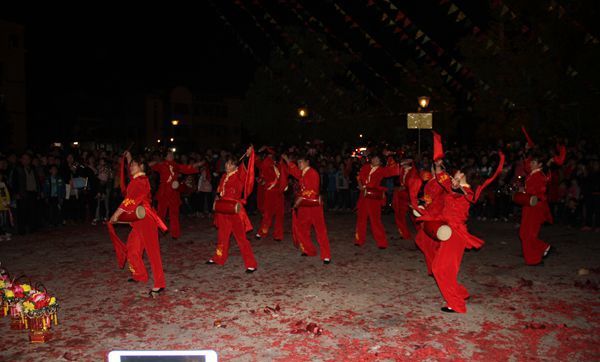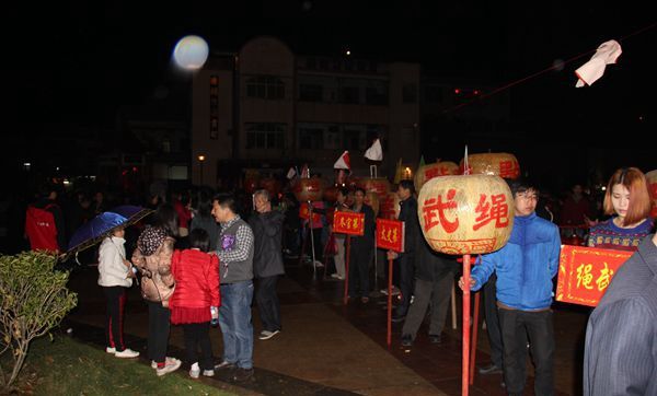 每年的正月十三傍晚,来自饶家各个分祠堂的迎灯祭祀队伍举着各式各样的灯,挑着供品,敲锣打鼓,一支支来到大宗祠门前的文化广场汇集,形成上千人的踩街队伍,开始往茶阳城不同方位不同街道穿梭游行。游龙所过之处,只要是饶氏的居家、店铺,都会在门前燃放爆竹、烟花,以示迎灯。大街小巷,张灯结彩,火树银花,万人空巷,全城为之欢腾!这已成为大埔当地一个很具特色的非物质文化传承节目!今年的茶阳灯会,邻县福建永定的饶氏妇女腰鼓队也来助兴。