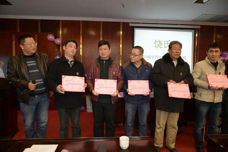 接下来是饶金卫副会长对2014年度工作报告:“2014年3月,加兵会长全家应邀并代表岳阳地区参加了浏阳饶氏宗亲联谊会和湖南省分会的年会;2014年5月,由加兵会长带领艳红宗亲、饶玉宗亲参加了北京香山中华饶氏商会成立大会,并带回了大会的相关资料,传达了大会精神;2014年9月,由加兵、饶成、成勇、金卫、汉华、云辉等宗亲在岳阳艺术主题生活馆召开了第二届中华饶氏岳阳第二届联谊会的筹备会议,并成立了筹备委员会,会上明确提出了以下几个思路:下县、下乡、下村,走访、摸底、调查、建档、掌握第一手岳阳地区饶氏宗亲居住及分布情况。融合各方资源,广为宣传发动、收集准确的信息,真正做到资料齐全、情况准确、信息畅通;2014年11月,由加兵会长带领铁基、金卫、新良宗亲驾车到平江长寿、南江桥实地调查并拿出指导性建议;2014年11月底,加兵会长、铁基、成勇、金卫宗亲到华容插旗、操军、终南、城关地区调研饶氏宗亲基本情况;2014年12月8日,受邵阳城步苗族自治县饶氏宗亲的邀请,加兵会长、金卫和罗波一行三人,驱车6个半小时行程500多公里,参加了城步苗族自治县饶氏太公祭祀大会;2014年12月20号,岳阳宗亲一行十二人赴平江参加了平江饶氏宗亲联谊会成立大会;2014年12月22号,加兵会长、金卫副会长到临湘市调研饶氏宗亲基本情况;2015年元月6号,由加兵会长带领、铁基名誉会长、金卫副会长一行三人到临湘、湘阴调研饶氏宗亲生活及分布情况;2015年元月7-8号,由金卫副会长到岳阳县、汨罗调研饶氏宗亲基本情况。”然后就是岳阳联谊会会长饶加兵对“姓饶真好”做出了自己的见解;湖南分会会长饶悌清将自己参与岳阳联谊会成立到今天有这么好的发展感到非常自豪。