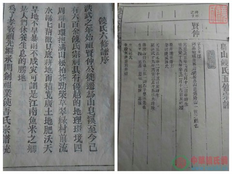 一到村头,刚从南昌赶回来的饶建新宗亲就已经在等待,他热情地接待了我们。大家一起查阅《乌山饶氏宗谱》,在打开族谱的第一页就明确记载了一世祖贤仲公是从丰城界山迁过来的。据载,贤仲公有四个儿子分别是思恭、思敬、思谦、思让,与我带去的祖谱记载的一模一样。贤仲公这支是从明朝初迁到西山镇开基的,谱上记载的十分详细。到现在,新建乌山饶氏已经繁衍到十七世,有一千多人口,是界山分支里一个较大的村庄,兴旺气象,一脉相传!