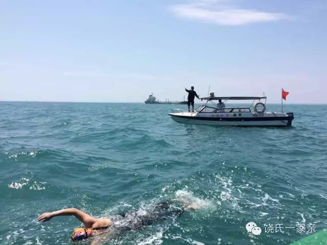 回想起5月14日那天自己横渡的整个过程,心里一直很温暖,脑袋里闪现过无数动人画面:凌晨四点上船出发到下水点有两小时航程,刚上船时看见姐姐单薄的背影被海风吹乱的头发我好想用手机拍下那一瞬间,但那还没来得及拍我已经开始晕船;看到我呕吐不止导航谢哥把我从船舱拉到船顶,把自己的军装和帽脱下来给我穿上,而他自己短袖立在凌晨的寒风之中;在我游泳前进的途中,导航谢哥和小黄一直立在我视线范围之内从不曾离开;姐姐晕浪呕吐数次之后站在船舷边给我加油;谢哥顶着骄阳一直指挥我如何破浪前行;…...我清楚自己是去挑战的,挑战于我是一种享受。但他们不是,他们完全是为了成全我的挑战陪在那里!守候在凌晨的冷风中,执着在正午的骄阳下!虽然没能拍到他们的画面,但他们的影像已经深深刻在了脑海里,比任何相机拍出来的画面都更美更永恒!他们的陪同让我很温暖!