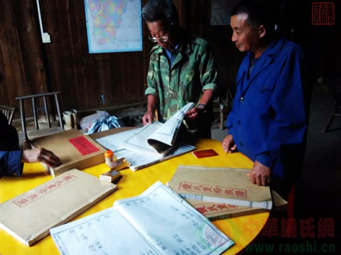 最近几天,虽然夏雨连绵不断,但也阻挡不住我们的走访脚步。6月4日,我们怀着兴奋的心情来到梅林镇拜访饶淼森宗亲,饶淼森宗亲是村里的干部,也担任梅林镇饶氏联谊理事会会长。在他的安排和邀请下,我和董家镇界山的继良、森林和湖塘中学校长饶少华,一行四人开着车经过二十多分钟的行程,到达了梅林镇破江村。这里是一个有着500多饶氏族人的村庄,我们受到了淼森宗亲和村里一些担任村干部的宗亲的热情招待,我们查看了他们的族谱,畅谈了各自支系的情况。天下饶氏一家亲,我们都是血脉相连的亲人,大家表示,今后要加强交流,常来常往,守望相助,共同发展。