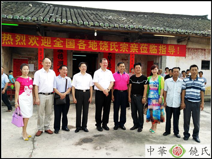当日,兴宁谦记大饶屋,门庭若市,彩旗飘扬,锣鼓喧天,热闹非凡,大门上方悬挂横幅《热烈欢迎全国各地饶氏宗亲莅临指导》。上午九时,在喜庆的炮竹声中迎来了八位宗亲,他们风尘仆仆,不辞劳苦,由北京到长汀、连城、龙岩、大埔、茶阳、梅县松口后赶赴兴宁。他们是中国城市”医生”饶及人宗亲与秘书饶旭宗亲,原解放军报副总编辑饶洪桥宗亲,深圳人大常委饶永宗亲,广东分会永久荣誉会长饶达昌宗亲,广东分会会长饶颂华,热心人士饶颂平宗亲,贵州帝饶酒业有限公司董事长饶家美宗亲。