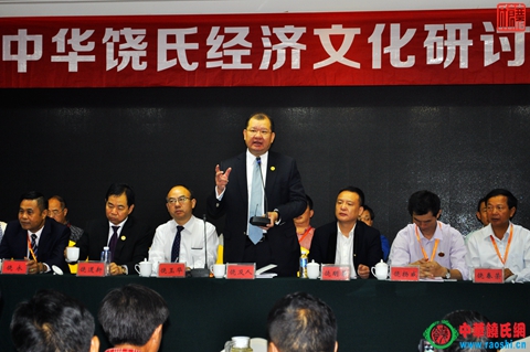 总会常务理事饶宽代表“2016年清明临汾祭拜尧帝活动筹备小组”介绍了该活动的意义和方案,得到了各地宗亲的响应,纷纷表示了明年参与赴临汾祭拜尧帝的愿望。广西分会会长饶智锋,贵州分会会长饶毅,华北水利水电大学法学院院长、教授、博士、河南西峡饶明奇,广东分会秘书长饶东升,江西分会副会长饶兴,安徽金寨族长饶从林,福建永定饶世坩等宗亲上台发言致贺。