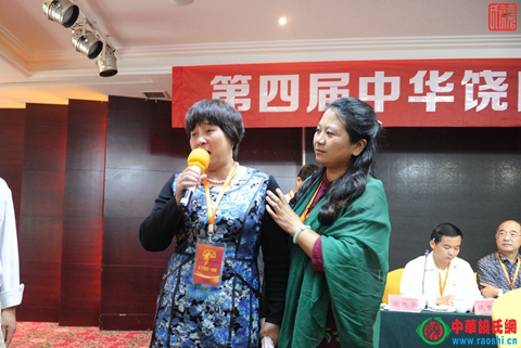 11.现场捐款的河南饶德会宗亲(左)与会议主持人饶丽