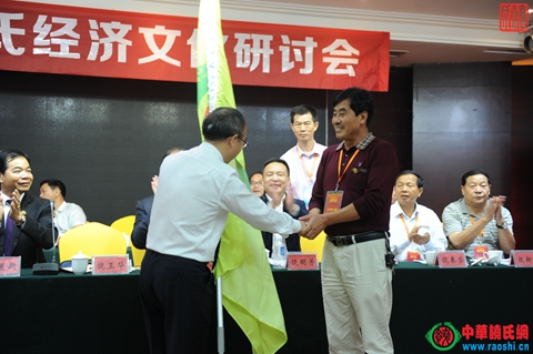 15.饶辉宗亲代表江西分会接过第五届承办会旗