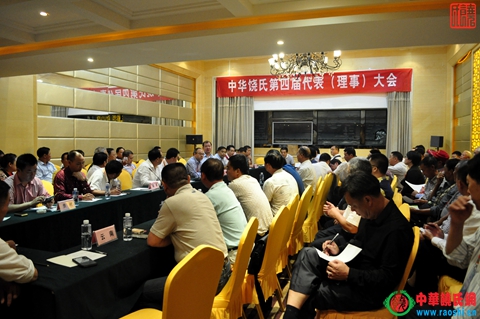 在明月厅,由各省推荐出的92名代表(理事)参加了“中华饶氏总会第四届代表(理事)大会”。根据第四届换届选举工作小组作出的决议,由各省代表经过协商、讨论、推荐“常务理事候选人”。最后,代表(理事)大会决定由“换届选举工作小组”来确定常务理事人选的名额分配方案,再由各省自行推荐常务理事成员。大会暂时休会,换届工作小组转至另外会议室召开第二次会议,经过对各省饶氏人数的多少,以及参与热情的程度等等情况进行综合分析,最后确定各省常务理事的名额分配方案。常务理事会人数由江西4名、湖北3名、湖南2名、河南1名、浙江2名、广东4名、福建3名、云南1名、广西1名、重庆2名、四川2名、安徽1名、贵州3名、总会12名共计41位宗亲组成。各省推荐的名单产生后,到会的30位常务理事参加了“第四届常务理事会第一次会议”,会议以举手表决的方式,选举饶玉华为总会会长、饶明芳为总会常务副会长、饶旭华为总会秘书长,推举饶及人、饶洪桥、饶道新、饶永宗亲为总会顾问,另对部分常务理事成员进行了分工。第四届换届选举工作的顺利进行,组成新一届的强有力的决策核心层,为圆满召开本次会议奠定了基础,为总会今后的发展确定了方向。