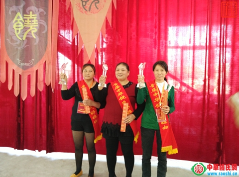 根据会议安排,首届“中华饶氏好媳妇”表彰仪式也在饶为市村文体活动中心举行。首届“中华饶氏好媳妇”是由各省推荐,经组委会评审,并于十月初在饶氏网公示,共有21名饶氏媳妇获得“首届中华饶氏好媳妇”称号。在这个饶氏村庄中,在饶氏祠堂中,饶家好媳妇蔡利琴宣读“好媳妇颁奖词”,在这个热烈隆重的会场中,湖北好媳妇代表伍学芬、贵州好媳妇代表向德品、江西好媳妇代表何梅兰亲到现场领取奖杯、奖状、奖品,总会顾问饶及人、会长饶玉华为她们颁奖。好媳妇上台领奖博得了阵阵掌声,其他未到好媳妇的奖品,由其所在宗亲会代为领取。在饶氏家族中,有无数的好媳妇,她们在事业上出类拔萃,在生活中孝敬老人,相夫教子,为饶氏家族的发展撑起了“半边天”,她们的优秀品质、健康体魄,都是培养优秀族人的重要基础。推行正能量,引领新风尚,开展好媳妇评选活动是广大族人翘首以盼的,也为今后继续开展评选活动提供了经验。表彰仪式结束后,全体参会宗亲在祠堂内享用当地特色的农家饭菜。