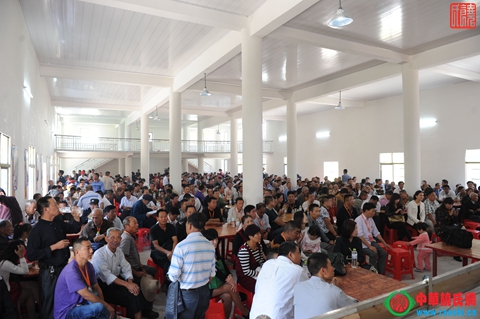十八日上午九时,全体参会宗亲分乘七辆旅游大巴,与部分小车浩浩荡荡前往梅川镇饶为市村。饶为市村位于武穴市北部,是武穴市最大的饶氏聚居村之一,有二千多人口,也是民国史上著名人物、骈文大家---饶汉祥先生的老家,也是目前武穴市新农村样板建设的目标村。饶为市村在饶锡龙书记的带领下,为迎接第四届中华饶氏经济文化研讨会的召开,自筹资金建造村文体活动中心。本次研讨会期间,组织全体参会宗亲到村,感受江北农村饶氏族人的生活。来自全国各地的宗亲来到雄伟的“饶为市村文体活动中心”,得到了饶氏村民的热烈欢迎,宗亲队伍由锣鼓队引领,沿途彩旗飘扬、礼炮震天。