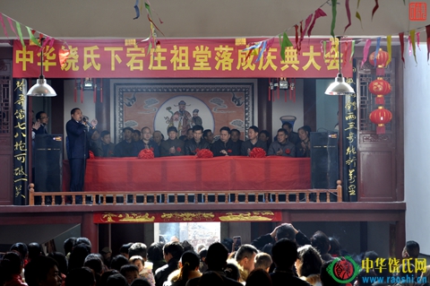 岁次乙未年仲冬月二十日,公历二零一五年十二月三十日,中华饶氏湖北大冶下宕庄,彩旗飘扬,锣鼓声声。来自浙江、安徽、广东、贵州、江西等省宗亲代表以及湖北武汉、孝感、浠水、英山、黄石、大冶饶氏敦睦堂的二十多个家门宗亲1000余人齐聚大冶下宕庄,隆重举行庆祝中华饶氏下宕庄宗堂落成大会。