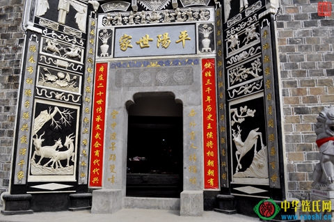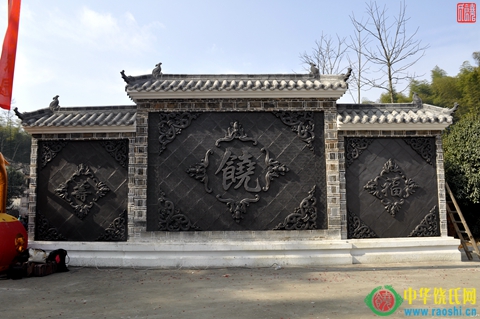 庄头影壁墙,砖雕制作,美奂美仑。中间巨大“饶”字,古朴霸气,左“福”右“寿”,祈福饶氏美好未来。