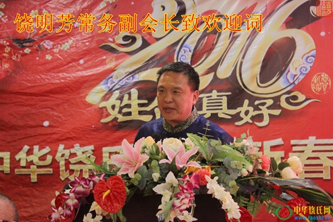团拜会于下午三时开始,首先由中华饶氏总会常务副会长、江西贵源企业集团董事长饶明芳宗亲致欢迎词。明芳常务副会长加入饶氏宗亲大家庭以来,满怀热情,为此做出了巨大的贡献。总会首次举办的新春团拜会,拟以新面貌新形式来展示新风采,会议在玉山举行即为明芳常务副会长所资助。