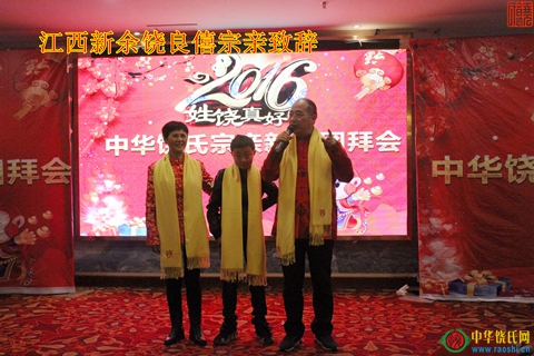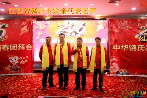 团拜会开始后,福建省、广东省、贵州省、湖北省、湖南省、上海市、四川省、重庆市、浙江省、山西省、海南省、安徽省,江西省的抚州市、赣州市、南昌市、九江市、宜春市、新余市、上饶市,以及香港、加拿大等宗亲代表,身着统一服装,喜气洋洋,分别上台向全国族人拜年,以各自的形式祝愿饶氏家族的明天更美好。