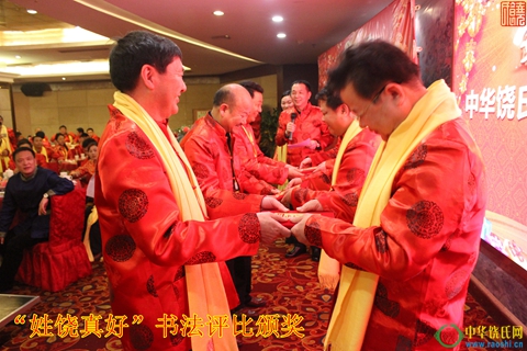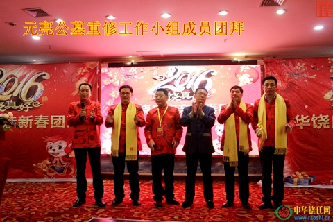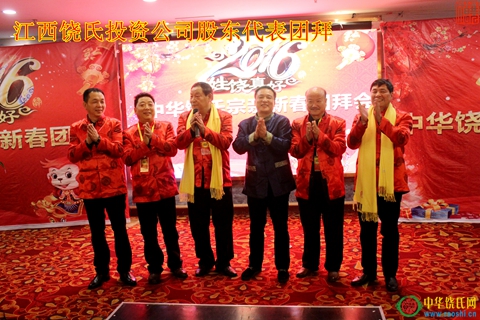 在团拜会上,“江西饶氏投资公司”股东饶明芳、饶新民、饶辉、饶英奇、饶玉喜、饶洪仁等站台亮相,再次宣示公司为中华饶氏家族实现造血功能的诺言;“元亮公墓重修工作小组”饶明芳、饶辉、饶宽、饶洪仁、饶英奇、饶建华等也上台,简单介绍修墓工作的进程和设想。“姓饶真好”书法评比活动颁奖仪式也同时进行,本次共六位宗亲获得一、二、三等奖,组委会为他们颁发了证书和奖金。