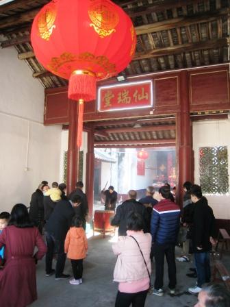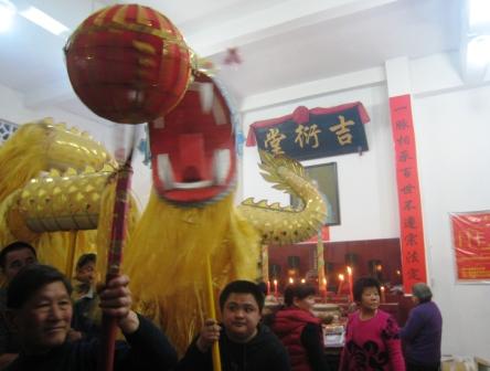 大年初一上午,茶阳饶氏文化联谊会饶仁河、饶和平、饶建祥等理事带着锣鼓队、彩旗队沿街给饶氏族人拜年,恭祝众宗亲新的一年财丁兴旺。下午,茶阳下马湖饶氏敬业堂宗亲舞着美丽的“花环龙”,依照古礼来到茶阳饶氏大宗祠“吉衍堂”参拜。吉时,礼乐响起,只见彩龙翻飞、锣鼓喧天、喜炮齐鸣,引得众多居民前来观看。