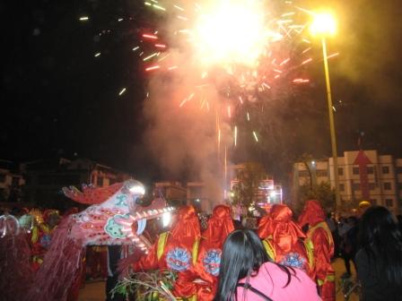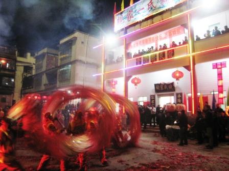正月十三日晚,茶阳饶氏文化联谊会精心组织了2016年新春迎灯拜祖活动。晚上,大宗祠前的文化广场华灯璀璨,人山人海。宗亲们着红、黄、绿三条 “饶氏花环龙”,劲敲着锣鼓,高擎着“饶”字灯笼和彩旗,从四面八方汇集到“吉衍堂”总祠门前。但见龙飞凤舞、锣鼓喧天、喜炮齐鸣,引得众多居民前来观看。我省广州太和、韶关南雄的年轻宗亲也带着儿女前来走访并参加迎灯拜祖活动。