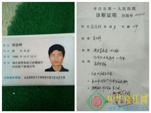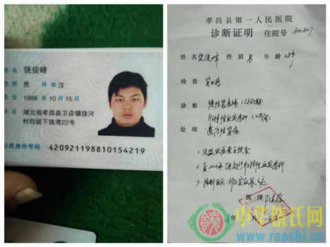 以下是饶俊辉、饶俊峰兄弟俩的病情证明及身份证明:
