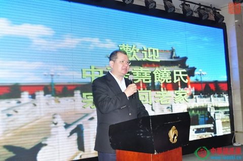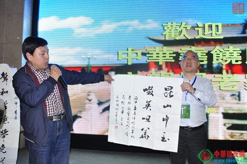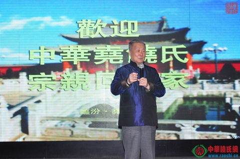 在本次寻根祭祖活动开始前夜,海内外饶氏恳亲交流会在临汾金海湾大酒店宴会厅举行,气氛热烈,欢乐祥和。出席恳亲交流会的有饶颖奇、饶玉华、饶及人、饶道新等近三百位海内外宗亲,这是自饶氏南迁数千年后第一次聚首祖地平阳,也是第一次海内外均有代表参加的宗亲大会。原临汾市人大常委会主任、临汾尧文化研究与开发委员主任刘合心先生等一行也受邀参加了宴会。刘主任是尧文化的倡导者、推动者和践行者,希望临汾以尧文化为抓手,促进和振兴临汾经济发展。作为临汾的尧文化专业机构,刘主任对来自海内外饶氏宗亲表示热烈欢迎,他介绍了尧帝以及尧文化研究的现状,同时他明确指出,通过对尧文化以及饶氏族谱的研究,中华饶氏源于平阳,为尧帝直系后裔,后望出于平阳。刘合心主任还向饶氏总会赠送书法作品“尧饶同源”。参加本次祭尧活动的台湾前立法院副院长、海峡两岸客家文经交流会理事长、台湾饶氏宗亲会理事长、年过八旬的饶颖奇先生也发示讲话,他表示自己一贯主张和推行两岸和平往来,希望通过寻根问祖活动更加巩固两岸的交流,本次组团前来拜谒尧帝,更是表明台湾民众对中华根脉的认同,他表示能够亲临本次祭尧活动而感到高兴。中华饶氏总会会长、天下谱局金华文化股份有限公司董事长饶玉华,饶氏总会顾问、美国龙安集团总裁饶及人等也发表了讲话,他们充分肯定祭尧活动积极意义,将进一步促进饶氏家族和繁荣和进步。在会中,中华饶氏总会与台湾饶氏宗亲会互赠礼物,表明两岸饶氏将进一步开展深层次的交流与合作。非物质文化遗产传承人饶宝莲表演了剪纸艺术,其出神入化的剪纸技艺,获得在座嘉宾宗亲的高度称赞。这是两岸饶氏首次大规模的交流,恳亲会加深了全球饶氏的友谊,诠释了天下饶氏一家亲的内涵。