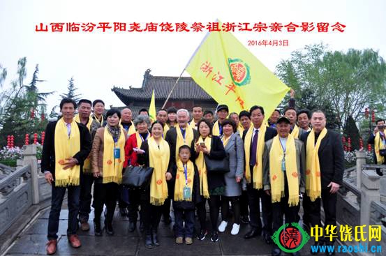 浙江衢州饶氏宗亲一行十九人赴山西临汾祭拜国祖尧帝庙饶陵。(图为浙江饶氏宗亲在尧庙前合影留念)