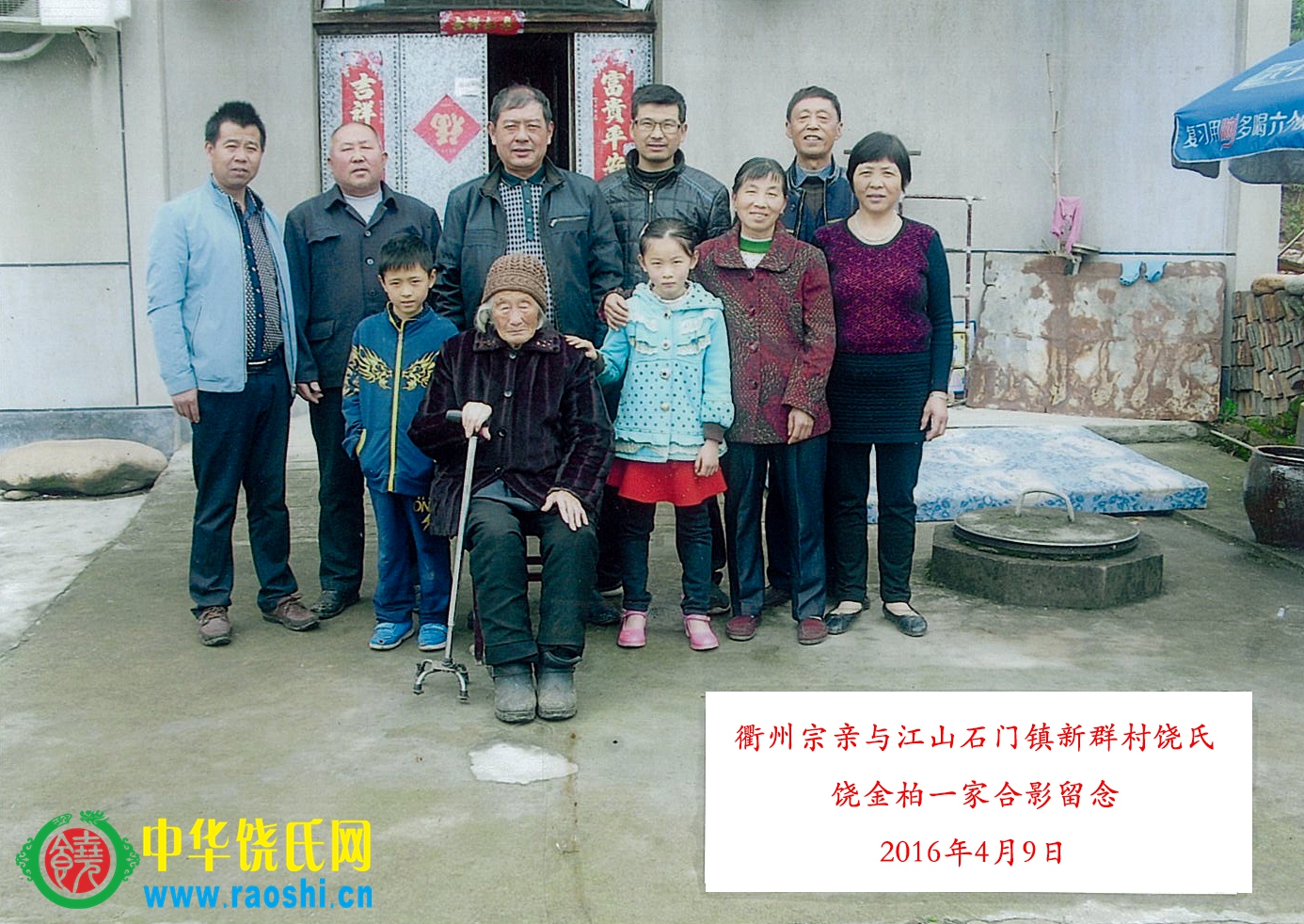 此次成行是由金文女儿饶芳霞致电玉华会长,才得知新群有一支饶家宗亲,在此感谢芳霞宗亲对我饶氏的用心,在此表示感谢。此行也受到芳霞五叔及其母亲、奶奶的盛情款待,告别时与八十七高龄奶奶、叔婶、侄等一家四代合影留念。愿新群饶家能继续寻祖,尽快得以归宗。
